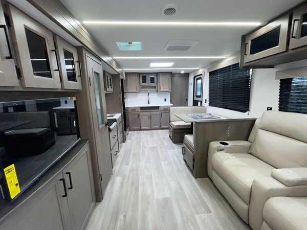 Your search for the perfect couple's trailer is over with this RV in tow! You will enjoy your own private bedroom up front with a queen bed, overhead storage, and TV prep if you choose to bring along your own television. The spacious full rear bath includes a linen closet and a walk-in shower to easily clean up each day. Relax on the theatre seating after a long day outdoors, or you can choose the optional sleeper sofa if you need additional sleeping space. The booth dinette can also be used for an overnight guest or two little ones. This model also includes plenty of storage space and plenty of counter space to prep and cook at-home meals!