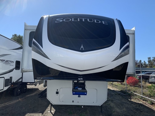 Each Solitude fifth wheel by Grand Design features a 101" wide-body construction, heavy duty 7,000 lb. axles, frameless tinted windows, and high-gloss gel coat sidewalls. You can camp year around thanks to the Weather-Tek Package that includes a 35K BTU high-capacity furnace, an all-in-one enclosed and heated utility center, and a fully enclosed underbelly with heated tanks and storage. Inside, you'll love the premium roller shades, hardwood cabinet doors, solid surface countertops and sinks, plus residential finishes throughout to make you truly feel at home. Each model also includes a MORryde CRE3000 suspension system, self adjusting brakes, and a MORryde pin box that will provide smooth towing from home to campground. Affordable luxury is possible with the Solitude fifth wheels; choose yours today!