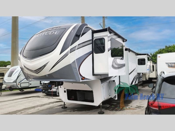 With each Solitude fifth wheel by Grand Design, you will have an exclusive superchassis, a wide rail design on heavy duty l-beam main rails providing a more stable jack stance, and maximum insulation from the thermal roof design and the exclusive full laminated walls to the insulated gooseneck and baggage doors. More features offered to help with traveling include the MORryde rubber pin box, the Tire Linc TPMS system, and the 6-point hydraulic system. And the 40,000 BTU of heating power, the heated underbelly and heated storage bay, the Evenflow heating system, and the Stealth A/C system with racetrack ducting, allow you to camp all year long! You will also find maximum storage solutions, residential features and so much more!