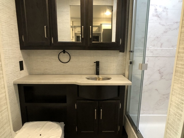 Travel to see new places and enjoy interior comforts as well as outdoor entertainment with this coach! After easily setting up the 23' electric awning you can relax and unwind while taking in the scenery or watching the the exterior LED HD Smart TV. The chef can utilize the outside kitchen or the full kitchen amenities inside such as a 10 cu. ft. refrigerator, the Furrion all-in-one cooktop and oven, plus a residential-size microwave. There is even a pop-up charging center. Enjoy privacy in the rear bedroom while you sleep on the walk-around queen bed, and add the TV option if you like. You will find seating in the main area on the Jayco-exclusive easy-operation legless dinette table and the jack-knife sofa, or choose the theater seating option. The cockpit table also gives you another surface to place your things while you sit in the driver and passenger seats that swivel. If you're needing additional sleeping space, just choose the drop-down overhead bunk option!