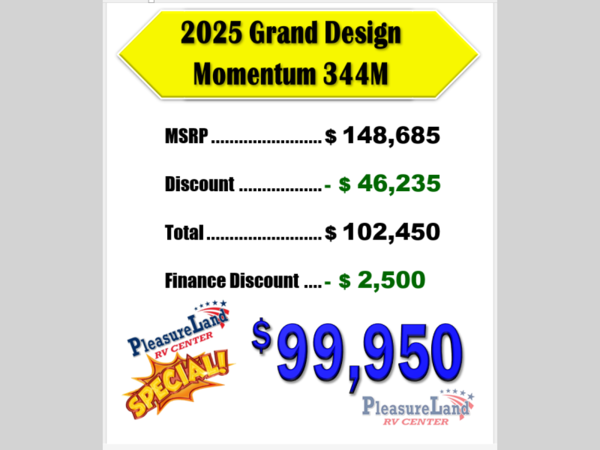 Grand Design Momentum M-Class toy hauler 344M highlights: