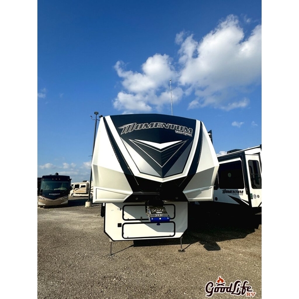 The Momentum Fifth Wheel Toy Hauler is the point where absolute luxury meets mobile garage! We have completely raised the Toy Hauler bar by incorporating an elegant Living Area, with more seating room, a fully functional Kitchen, while still keeping the Master Suite (with a large wardrobe slide) into this unit! Check out our Floorplan Fly-Through Videos and get a feel for the extraordinary space we've created. We know you will agree with us when we say that "The Momentum RV is the place to live well and play hard!".
