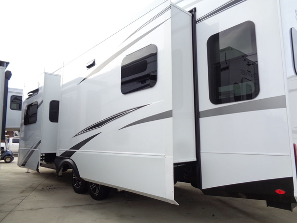At home, anywhere.If you're looking for more room, Solitude is the most spacious Extended Stay Fifth Wheel ever built. Taller ceilings, bigger cabinets, and a sweeping scenic window all make the Solitude a dream that you wake up to as long as you like.