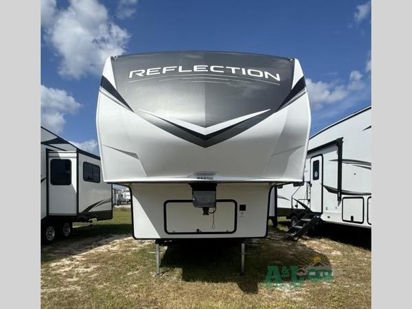 Feel right at home in this Reflection 150 Series with a private bedroom that includes a walk-around queen bed with storage on each side, windows, and a space savings sliding door. The full bathroom offers a walk-in shower, storage for your linens and a sliding door for easy access. When you get hungry, the cook will have an L-shaped kitchen area to make meals, plus full amenities including a 30" microwave, a flip-up counter extension, a pantry for your dry goods and a 16 cu. ft. refrigerator to store lots of food and cold beverages. You can dine at the rear U-shaped dinette lounge and enjoy the view out of all the windows or outside under the 18' electric awning. And the 78" theatre seating will be a nice place to relax and watch the 40" LED HDTV.