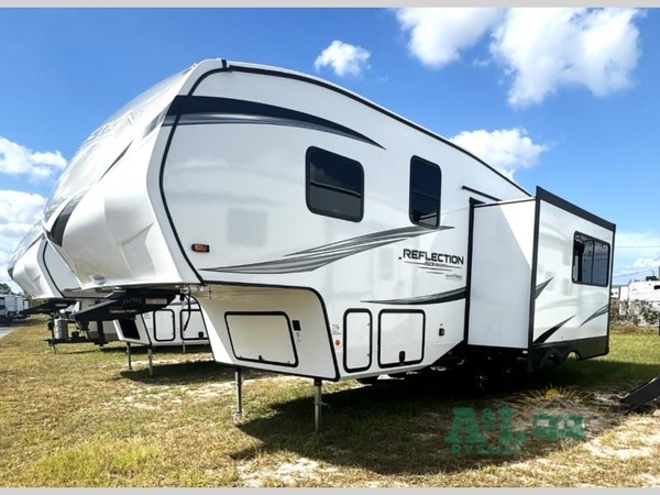 With any Reflection 150 Series fifth wheel by Grand Design, there is more available payload capacity and a broader range of half-ton trucks capable of towing this fifth wheel, and no slider hitch is needed thanks to the 90-degree turning radius which makes them short bed friendly and easier to tow. The mandatory Ultimate Power package provides a "One-Touch" automatic leveling system and a detachable power cord with LED light for easy setup, plus motion sensor pass-through lighting and entry lighting, and the Tire Linc TPMS will help you stay safe on the road. The interior offers residential luxury from the cabinetry and premium congoleum flooring, plus the booth dinette to the residential-style window treatment. Make your refined decision today!