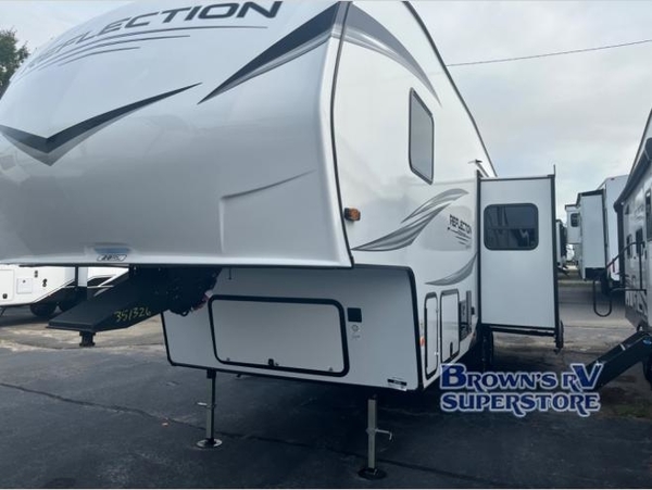 Each Reflection 100 Series fifth wheel by Grand Design is affordable and packed with luxury for unforgettable camping memories! The MorRyde CRE3000 suspension system and Goodyear Endurance tires will provide smooth towing from home to campground. And the solar package with a 180W solar panel, 60 Amp charge controller and 12V refrigerator will allow you to camp for longer periods of time and in more locations! A heated and enclosed underbelly with circulating heat is included in the Arctic 4-Seasons Protection Package, along with a double insulated roof and front cap, and thermofoil insulation under the holding tanks so you can camp all year long if you choose. You will appreciate having an on-demand water heater for hot showers after exploring, and the universal all-in-one docking station will let you monitor your RVs tanks levels and functions with ease. These models also include many luxurious interior features, such as premium Congoleum flooring, pleated shades, residential cabinetry, and matte black fixtures and hardware. Don't let the Reflection 100 Series fifth wheels pass you by!