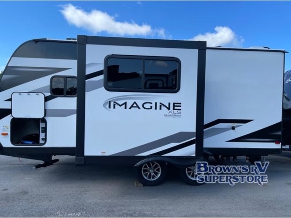 Let your imagination run wild with the possibilities that the Grand Design Imagine XLS travel trailer can provide! The Imagine XLS has been built with oversized tank capacities, an extra-large 2" fresh water drain valve, a ducted A/C system, a power tongue jack, and a heated and enclosed underbelly with suspended tanks. There is a designated heat duct to the subfloor and a residential ductless heating system throughout. For outdoor adventures, the electric awning with LED lights will enable you to stay protected, and the Tuff-Ply pass-thru flooring will withstand your many adventures. You will also love the XLS Solar Package that comes with a 180W roof mounted solar panel, a 40 Amp charge controller, a 12V 10 cu. ft. refrigerator, and roof mounted quick connect plugs!