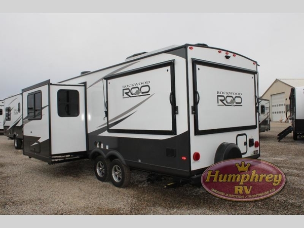 With any Rockwood Roo expandable travel trailer by Forest River you will enjoy smooth towing thanks to the torsion axle, Rubber-Ryde suspension, the easy lube axles and Nev-R-Adjust brakes. The key-Alike locks provide easy access in and out of your trailer, and each model includes prep for a Air 360+Omnidirectional antenna with WiFi for all your connection needs. Each model is constructed with a vacuum laminated one-piece roof and walls, an enclosed underbelly, and tinted framed windows for a more sleek look. You will enjoy many interior comforts, including hardwood cabinet doors and drawer fronts, night roller shades, a bunk/fan light combo with each bed, and much more!