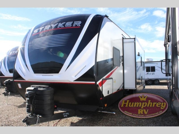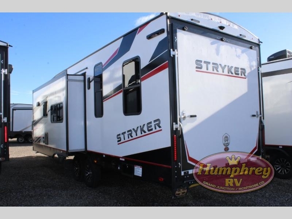 Each Stryker toy hauler travel trailer by Cruiser starts with a powder coated structural steel I-beam frame, Azdel composite laminated sidewalls, and a 102" wide body, perfect for your side-by-side, dirt bikes, or kayaks! The EZ flex rubberized suspension provides smooth towing on tougher roads, and the painted molded fiberglass front cap not only looks sleek, but provides better protection. Inside, you'll find barreled ceilings up to 98" in height, solid surface kitchen cabinets, and numerous USB ports and 110V outlets. There's so much more to love about the Stryker toy haulers, like the premium sound system, large windows, tons of storage space, and the list goes on!