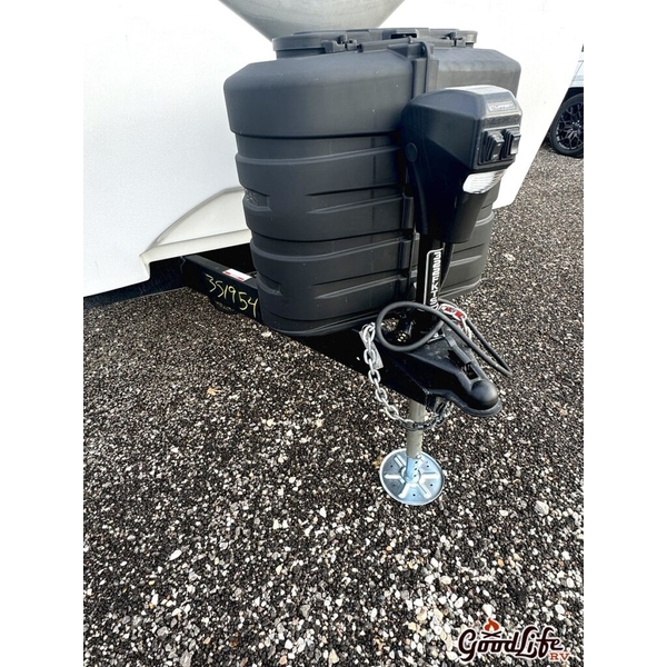 The 2025 Grand Design Reflection 322FKTS is a front kitchen travel trailer designed for those seeking a residential-style camping experience with ample space and high-end finishes. The front kitchen layout includes expansive counter space, premium appliances, a large pantry, and a dinette with panoramic windows, creating an inviting area for cooking and dining. The central living area has theater seating and an entertainment center with a cozy fireplace, perfect for relaxing. A private rear master bedroom features a king-size bed, large wardrobe, and easy access to the spacious bathroom. With abundant storage, luxurious finishes, and a thoughtfully designed floor plan, the 322FKTS provides comfort and style for extended stays on the road.