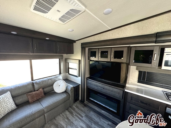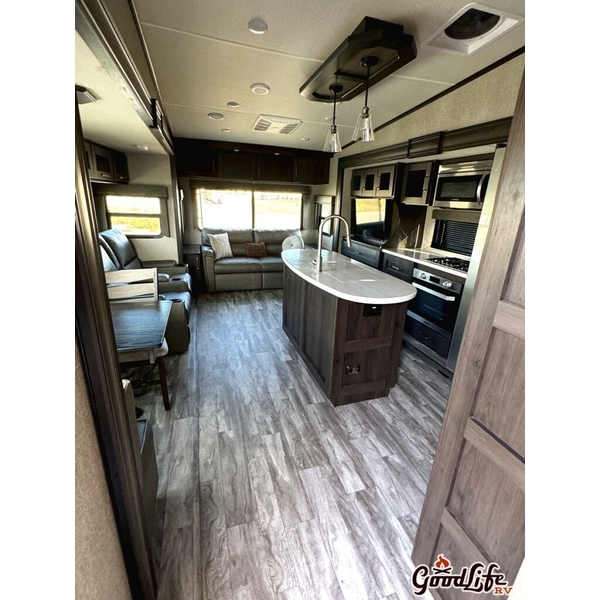 This USED 2023 Grand Design Reflection 367BHS is a luxurious fifth-wheel RV designed for comfort and convenience. It features a mid-bunk floorplan with a separate bunkhouse room, ideal for families or groups. The RV offers a spacious living area with a modern kitchen, theater seating, and a large entertainment center. It includes high-end amenities like a large pantry, ample storage, residential-style furniture, and a master bedroom with a queen bed. With superior insulation, robust construction, and advanced climate control systems, it's designed for year-round travel and camping in various environments. We do offer competitive financing and accept trades!  Give us a call today at Good Life RV in Webster City, IA 515-832-5715 and schedule your appointment to see this RV!