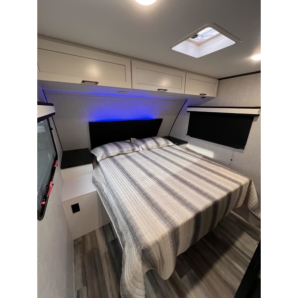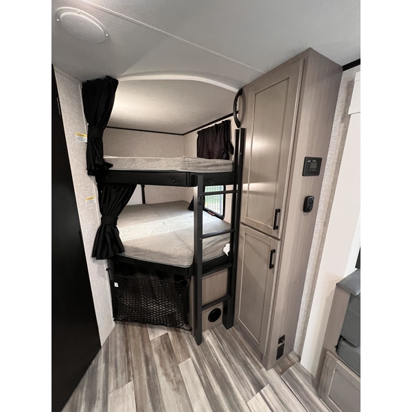 Camping has never been more comfortable than in the 2025 Jay Feather. This lightweight travel trailer is full of amenities, offers the same great interior decor you know and expect from Jayco, and a number of floorplans that are sure to fit your lifestyle. The bedroom in this RV is arguably one of the most comfortable places in the unit. For being a smaller travel trailer, its open-front bedroom features increased window sizes and 60- x 80-inch queen size bed, allowing for natural light a great walk-around space. Most Jay Feather floorplans now offer an optional 72- x 80-inch king bed; you truly will feel right at home on the road.