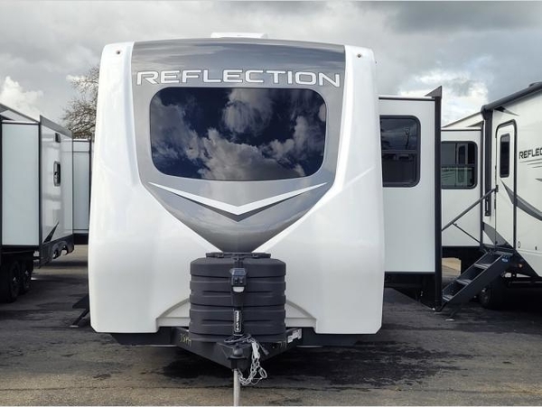 With any Reflection travel trailer by Grand Design, you will have a solar panel for off-grid camping and a 60 amp charge controller and inverter prep, a Universal All-In-One docking station, unobstructed pass-through storage, and Goodyear Endurance tires. Each is constructed of gel coat exterior sidewalls, residential 5" truss rafters, walk-on roof decking, a fiberglass and radiant foil roof and front cap insulation plus laminated aluminum framed side walls, roof and end walls in slide rooms. Head inside to enjoy residential hardwood cabinet doors, premium Congoleum flooring, a spacious shower with a glass door, and many more comforts!