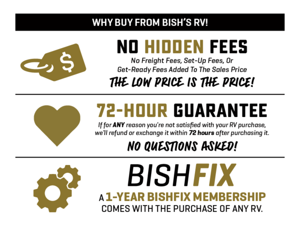 Perfect for your family, this single slide with split bunk and queen bed provides your family comfortable sleeping for four, and the slide adds a bit more interior space in camp. The split bunk is located behind the spice rack door and TV for your entertainment and cooking needs. Speaking of cooking, you can prepare your best home cooked meals with the cooktop, and store any leftovers in the dual swinging 12V refrigerator. Relax each night in the theater seating and freshen up in the rear corner bathroom each morning which features a skylight over the shower for more natural lighting.