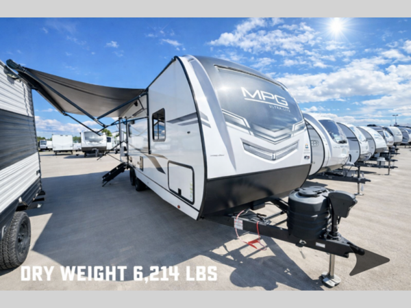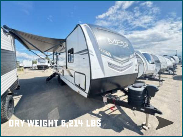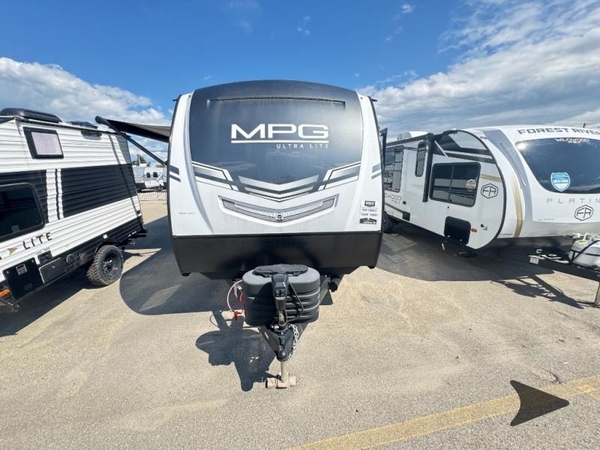 With any MPG travel trailer or toy hauler by Cruiser you will find Azdel composite laminated walls, and a high gloss fiberglass front cap with LED lighting for a sleek look. There are seamless kitchen countertops and plywood flooring that will be easy to clean, plus residential hardwood cabinets with hidden hinges for a more at-home feel. The slam latch baggage doors with magnetic latches will make loading up easier than ever, plus the pass-through storage includes motion sensing LED lights you are sure to appreciate. Each model also includes multiple charging stations with 12v and USB ports, a four speaker soundbar system to listen to your playlists, and a dual ducted A/C to keep you cool during those hot summer months!