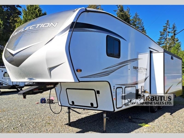 With any Reflection 150 Series fifth wheel by Grand Design, there is more available payload capacity and a broader range of half-ton trucks capable of towing this fifth wheel, and no slider hitch is needed thanks to the 90-degree turning radius which makes them short bed friendly and easier to tow. The mandatory Ultimate Power package provides a "One-Touch" automatic leveling system and a detachable power cord with LED light for easy setup, plus motion sensor pass-through lighting and entry lighting, and the Tire Linc TPMS will help you stay safe on the road. The interior offers residential luxury from the cabinetry and premium Congoleum flooring, to the booth dinette and residential-style window treatment. Make your refined decision today!