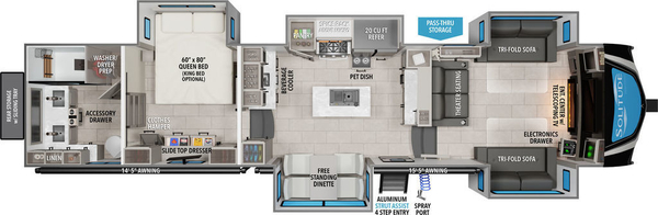 If you're looking for more room, Solitude is the most spacious Extended Stay Fifth Wheel ever built. Taller ceilings, bigger cabinets, and a sweeping scenic window all make the Solitude a dream that you wake up to as long as you like.