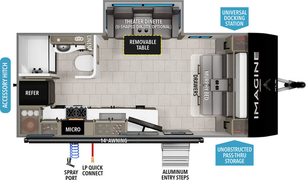 Light on weight, not substance, the Imagine XLS features floorplans starting at under 5,000-pounds. XLS pairs perfectly with even more of today's medium-duty trucks and SUVs, without the compromise that other manufacturers feel forced to make in pursuit of lighter weight.