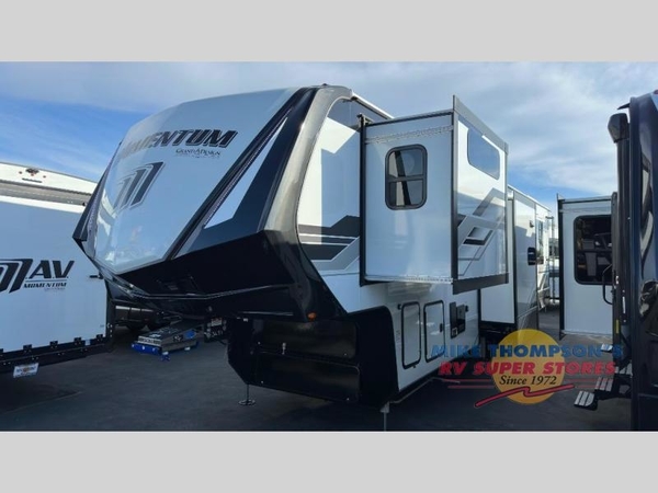With any Momentum M-Class toy hauler by Grand Design, you will enjoy luxury at every turn! They have been constructed to a superior standard with a thermal roof design, triple insulated main floor and garage floor, and a Rail-Tite underbelly seal that will allow you to camp in all elements. Each model also features an 8' 5" wide body chassis with a wide rail design, no wheel wheels, and a dovetail entry for easier loading. The Stealth A/C system provides maximum cooling power, and the CRE3000 suspension system means you can enjoy a smooth tow each time. You will love the luxurious interior with a professional grade stainless steel cooktop, interior color changing LED accent lighting, a fiberglass shower with a glass door, and solid surface countertops.