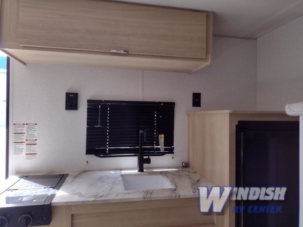 This Limited Edition Wildwood FSX travel trailer provides great value in a lightweight model! Included at no extra cost are a power awning, a 13,500 BTU air conditioner, full-size spare tire, and 4.5 cu. ft. refrigerator. There's also a walk-on roof and prep for a ladder. There's room to sleep six, with a queen bed, a pair of bunk beds, and a convertible sofa. Extra thick luxury vinyl flooring is comfortable underfoot and easy to keep clean. The exterior storage has a large baggage door so you can fit those bigger items. The Limited Edition Camp Ready package includes a two-burner cooktop, 5,000 BTU fireplace, and a 20 lb. LP bottle.