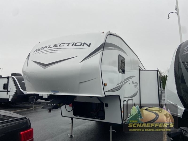 Each Reflection 100 Series fifth wheel by Grand Design is affordable and packed with luxury for unforgettable camping memories! The MorRyde CRE3000 suspension system and Goodyear Endurance tires will provide smooth towing from home to campground. And the solar package with a 180W solar panel, 60 Amp charge controller and 12V refrigerator will allow you to camp for longer periods of time and in more locations! A heated and enclosed underbelly with circulating heat is included in the Arctic 4-Seasons Protection Package, along with a double insulated roof and front cap, and thermofoil insulation under the holding tanks so you can camp all year long if you choose. You will appreciate having an on-demand water heater for hot showers after exploring, and the universal all-in-one docking station will let you monitor your RVs tanks levels and functions with ease. These models also include many luxurious interior features, such as premium Congoleum flooring, pleated shades, residential cabinetry, and matte black fixtures and hardware. Don't let the Reflection 100 Series fifth wheels pass you by!
