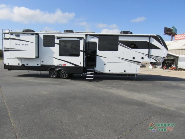 Experience full-time luxury and all-season comfort with the 2026 Grand Design Solitude 390RK. Visit Campers Inn RV today and see why this fifth wheel is the ultimate home on the road.