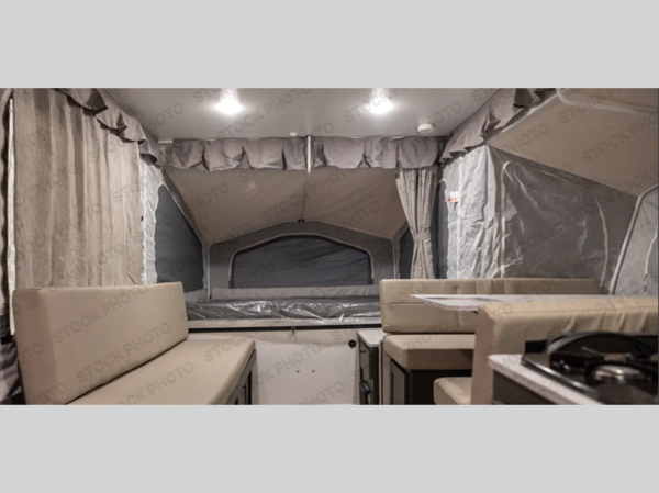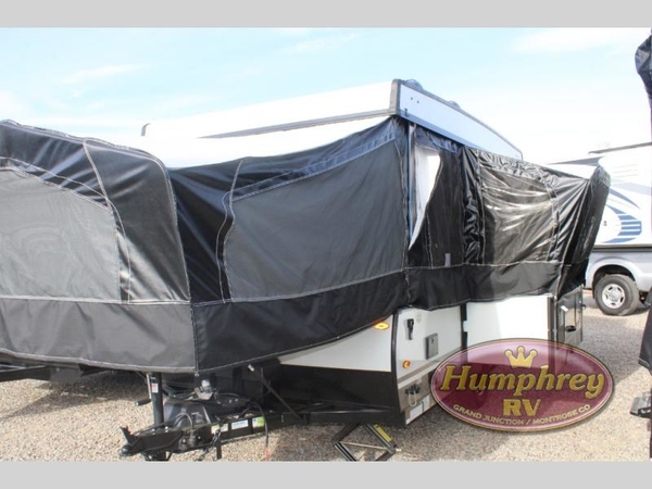 You won't have to worry about length restrictions or cumbersome towing because this Rockwood Freedom Series folding pop-up camper provides you with a lightweight and flexible alternative to heavy RVs! This camper has a single slide built into it which will deliver extra space to the interior without adding to the overall width while traveling, and the booth dinette is a functional piece of furniture that can serve as a dining table and a bed. The swing galley includes a three burner range with a cover to cook meals and a sink for easy cleaning. There is also a shower/toilet to make this unit even more convenient.
