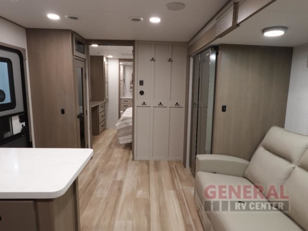 With any Reflection travel trailer by Grand Design, you will have a solar panel for off-grid camping and a 60 amp charge controller and inverter prep, a Universal All-In-One docking station, unobstructed pass-through storage, and Goodyear Endurance tires. Each is constructed of gel coat exterior sidewalls, residential 5" truss rafters, walk-on roof decking, a fiberglass and radiant foil roof and front cap insulation plus laminated aluminum framed side walls, roof and end walls in slide rooms. Head inside to enjoy residential hardwood cabinet doors, premium Congoleum flooring, a spacious shower with a glass door, and many more comforts!