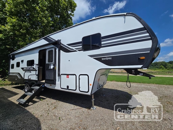 Each Reflection 100 Series fifth wheel by Grand Design is affordable and packed with luxury for unforgettable camping memories! The MorRyde CRE3000 suspension system and Goodyear Endurance tires will provide smooth towing from home to campground. And the solar package with a 180W solar panel, 60 Amp charge controller and 12V refrigerator will allow you to camp for longer periods of time and in more locations! A heated and enclosed underbelly with circulating heat is included in the Arctic 4-Seasons Protection Package, along with a double insulated roof and front cap, and thermofoil insulation under the holding tanks so you can camp all year long if you choose. You will appreciate having an on-demand water heater for hot showers after exploring, and the universal all-in-one docking station will let you monitor your RVs tanks levels and functions with ease. These models also include many luxurious interior features, such as premium Congoleum flooring, pleated shades, residential cabinetry, and matte black fixtures and hardware. Don't let the Reflection 100 Series fifth wheels pass you by!