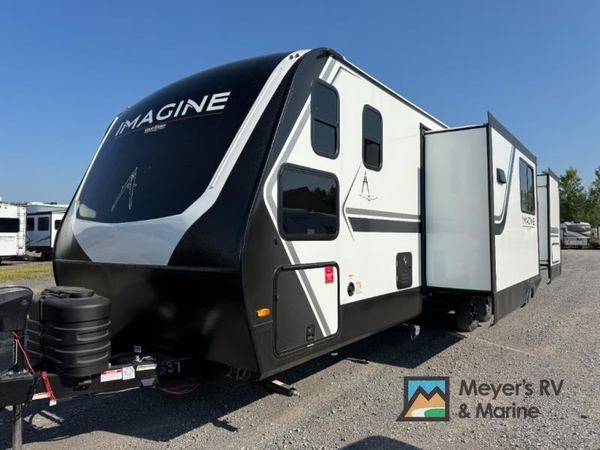 Just imagine leaving the world behind and secluding yourself away with your favorite people in your Grand Design Imagine travel trailer! The Imagine has been designed to enjoy extended season camping and includes a high-capacity furnace, a heated and enclosed underbelly with suspended tanks, a designated heat duct to the subfloor, and a high-density roof insulation with attic vent. You'll have maximum head room on the interior with 81" radius ceilings, and large panoramic windows to let in natural lighting. The exclusive drop-frame pass-through storage compartment is going to allow you to bring along lots of equipment, and the universal docking station is an all-in-one location for utilities and hook-ups. You'll also have oversized tank capacities so that you can fill and empty your tanks less often.