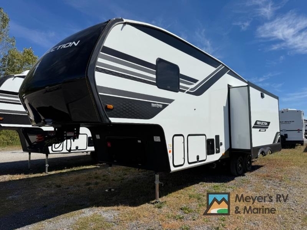 With any Reflection 150 Series fifth wheel by Grand Design, there is more available payload capacity and a broader range of half-ton trucks capable of towing this fifth wheel, and no slider hitch is needed thanks to the 90-degree turning radius which makes them short bed friendly and easier to tow. The mandatory Ultimate Power package provides a "One-Touch" automatic leveling system and a detachable power cord with LED light for easy setup, plus motion sensor pass-through lighting and entry lighting, and the Tire Linc TPMS will help you stay safe on the road. The interior offers residential luxury from the cabinetry and premium Congoleum flooring, to the booth dinette and residential-style window treatment. Make your refined decision today!