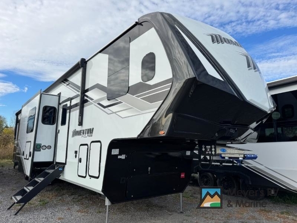 With any Momentum M-Class toy hauler by Grand Design, you will enjoy luxury at every turn! They have been constructed to a superior standard with a thermal roof design, triple insulated main floor and garage floor, and a Rail-Tite underbelly seal that will allow you to camp in all elements. Each model also features an 8' 5" wide body chassis with a wide rail design, no wheel wheels, and a dovetail entry for easier loading. The Stealth A/C system provides maximum cooling power, and the CRE3000 suspension system means you can enjoy a smooth tow each time. You will love the luxurious interior with a professional grade stainless steel cooktop, interior color changing LED accent lighting, a fiberglass shower with a glass door, and solid surface countertops.