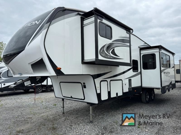 With any Reflection fifth wheels by Grand Design, you will have a 165W solar panel for off-grid camping and a 50 Amp charge controller and inverter prep, a Max Turn radius front cap for easy towing around town and into your campsite, a Universal All-In-One Docking Station, unobstructed pass-through storage, and Goodyear E-rated tires. Some other top features include a chef's kitchen with a 30" stainless steel microwave and residential cooktop, a USB charging station, and the ductless "Evenflow" heating system with no vents in the floor to collect debris. Each is constructed of high gloss gel coat exterior sidewalls, residential 5" truss rafters, walk-on roof decking, a fiberglass and radiant foil roof and front cap insulation plus laminated aluminum framed side walls, rear wall, roof and end walls in slide rooms. Choose luxury, value and towability over all the others, take home a Reflection of your good taste!