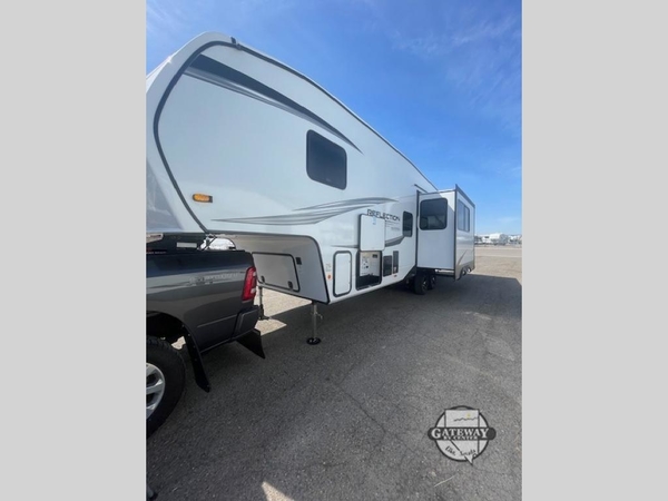 With any Reflection 150 Series fifth wheel by Grand Design, there is more available payload capacity and a broader range of half-ton trucks capable of towing this fifth wheel, and no slider hitch is needed thanks to the 90-degree turning radius which makes them short bed friendly and easier to tow. The mandatory Ultimate Power package provides a "One-Touch" automatic leveling system and a detachable power cord with LED light for easy setup, plus motion sensor pass-through lighting and entry lighting, and the Tire Linc TPMS will help you stay safe on the road. The interior offers residential luxury from the cabinetry and premium Congoleum flooring, to the booth dinette and residential-style window treatment. Make your refined decision today!