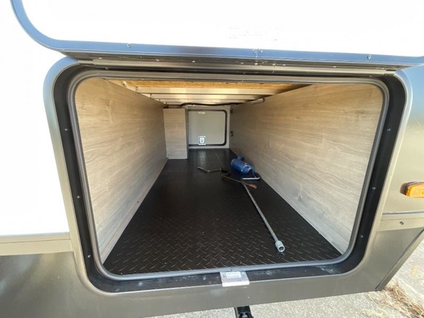 Unleash adventure with this incredible travel trailer! Sleep in style in the serene bedroom, featuring a plush queen bed, spacious wardrobe, and TV prep for entertainment. The kitchen is equipped with a pull-out pantry, 10 cu. refrigerator, microwave, and three-burner cooktop for delicious meal prep. Enjoy extra counter space with the flip-up countertop extension, optimal for easy and comfortable cooking. Family and friends can dine at the U-shaped dinette while watching the  LED HDTV for added entertainment. The full bathroom offers a shower, and linen closet. Kids will love the double bunk bed, perfect for taking a nap. On the exterior, you will find the outdoor kitchen, pass-thru storage, and 20 x 20 baggage door/trash can storage, ideal for a better organization of your belongings. Finally, create outdoor activities without worrying about the weather thanks to the 19 awning.