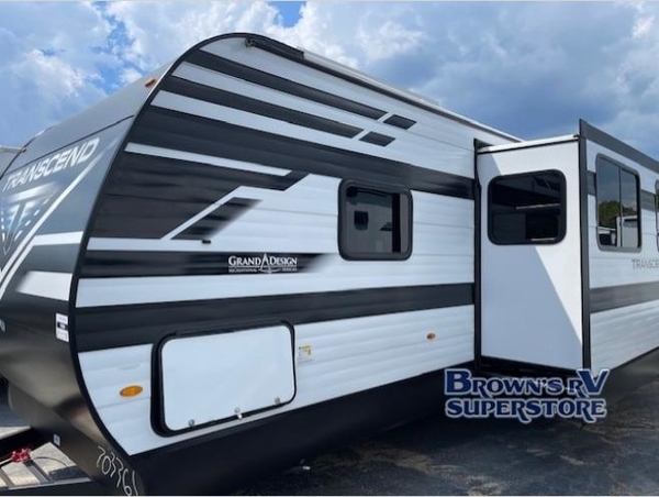 With any Transcend travel trailer by Grand Design, you will enjoy upscale appointments and convenient amenities to make each camping experience one to remember! The Quad Seal technology, residential insulated walls, plus heated and enclosed underbelly with suspended tanks make these units solid and durable. There is a black automotive glass door outside, along with a Safe-T-Rail assist on the main entry door, backup camera prep, and a universal docking station. JBL interior and exterior speakers plus a JBL head unit will let you listen to your favorite tunes as you visit under the power awning with LED strip lights. Inside, you'll enjoy multiple outlets to keep your gadgets charged, thermoformed and seamless countertops, and a 6' 6" interior height so you won't feel closed in. The Solar Prep Package will allow you to enjoy off-grid capabilities with a 200W solar panel, which is wired for up to 600W, a 30 AMP Bluetooth solar controller, a 2000W inverter prep, and more!