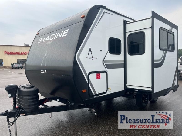 Let your imagination run wild with the possibilities that the Grand Design Imagine XLS travel trailer can provide! The Imagine XLS has been built with oversized tank capacities, an extra-large 2" fresh water drain valve, a ducted A/C system, a power tongue jack, and a heated and enclosed underbelly with suspended tanks. There is a designated heat duct to the subfloor and a residential ductless heating system throughout. For outdoor adventures, the electric awning with LED lights will enable you to stay protected, and the Tuff-Ply pass-thru flooring will withstand your many adventures. You will also love the XLS Solar Package that comes with a 200W roof mounted solar panel, a 30 Amp charge controller, a 12V 10 cu. ft. refrigerator, and roof mounted quick connect plugs!