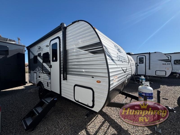 This single-axle couple's travel trailer is sure to bring you happiness at the campground. There is a front queen bed with a privacy curtain if you have a guest staying over on the jack-knife sofa, and the movable table in front of the sofa will provide more floor space when needed. A cooktop and microwave oven will let you make meals each day, and an 8 cu. ft. 12V refrigerator will be perfect for perishables. This model also includes a full rear bath with a tub/shower, a toilet, plus a sink and a linen closet for clean towels. The optional Baja Package can be added on this model which includes 16 in. off-road tires, a deluxe graphics package, triple entry steps, and more!