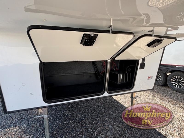 With any Keystone Raptor Carbon Series toy hauler fifth wheel, you will enjoy a new chassis with a larger pass-through storage and a new front cap with LED lighting. There is also an upgraded MORryde CRE3000 suspension, a 6-point hydraulic Level-Up system, and a Nautilus exterior convenience center to easily access all your hookups. Inside, you'll love the hardwood soft-close cabinet doors, pressed countertops, and Thomas Payne furniture. The Extreme Weather Package will add protection against the elements, and the on-demand tankless water heater will provide endless hot showers!