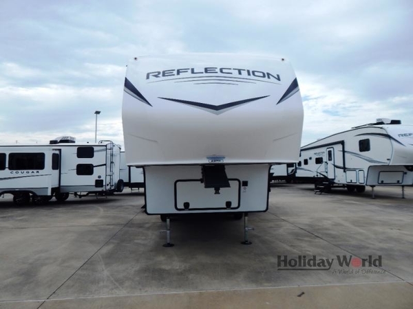 Each Reflection 100 Series fifth wheel by Grand Design is affordable and packed with luxury for unforgettable camping memories! The MorRyde CRE3000 suspension system and Goodyear Endurance tires will provide smooth towing from home to campground. And the solar package with a 180W solar panel, 60 Amp charge controller and 12V refrigerator will allow you to camp for longer periods of time and in more locations! A heated and enclosed underbelly with circulating heat is included in the Arctic 4-Seasons Protection Package, along with a double insulated roof and front cap, and thermofoil insulation under the holding tanks so you can camp all year long if you choose. You will appreciate having an on-demand water heater for hot showers after exploring, and the universal all-in-one docking station will let you monitor your RVs tanks levels and functions with ease. These models also include many luxurious interior features, such as premium Congoleum flooring, pleated shades, residential cabinetry, and matte black fixtures and hardware. Don't let the Reflection 100 Series fifth wheels pass you by!