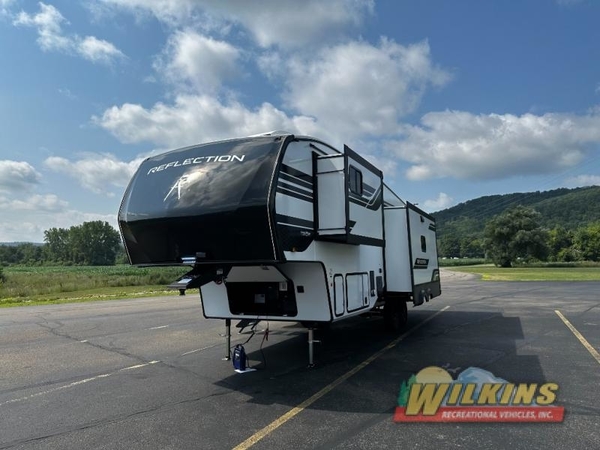 With any Reflection fifth wheel by Grand Design, you will have a solar panel for off-grid camping and a 60 amp charge controller and inverter prep, a Universal All-In-One docking station, unobstructed pass-through storage, and Goodyear Endurance tires. Each is constructed of gel coat exterior sidewalls, residential 5" truss rafters, walk-on roof decking, a fiberglass and radiant foil roof and front cap insulation plus laminated aluminum framed side walls, roof and end walls in slide rooms. Head inside to enjoy residential hardwood cabinet doors, premium Congoleum flooring, a spacious shower with a glass door, and many more comforts!
