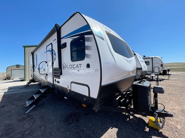 With any Wildcat fifth wheel or travel trailer by Forest River you will appreciate durable construction, including a Maxx strong laminated aluminum floor on the travel trailers, and underbelly armor on the fifth wheels. The Maxx insulation package includes high-density block foam insulation, two 30 lb. LP tanks, and a 35,000 BTU furnace to keep you comfortable year around. Some of the interior comforts you are sure to appreciate are the bedroom reading lights on both sides of the bed, the foot pedal flush toilet in the bath, the Rose Gold door and drawer hardware, and more!