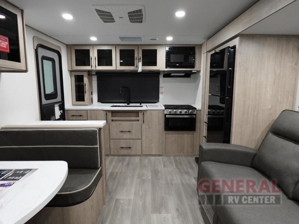 Treat yourself to a weekend of fun in this Imagine XLS travel trailer! Whether it's just you and your spouse, or you've chosen to bring along a group of friends, this trailer will meet the need. The front bedroom can sleep two people on the walk-around queen-size bed. The bedroom is quite functional because it not only contains the second exterior entry door, but it also has a private entrance into the walk-through bathroom since it is located on the other side of the bathroom. The booth dinette is functional too because it can transform from a dining location into a sleeping location, and the theater seating is directly across from the LED TV for easy viewing.