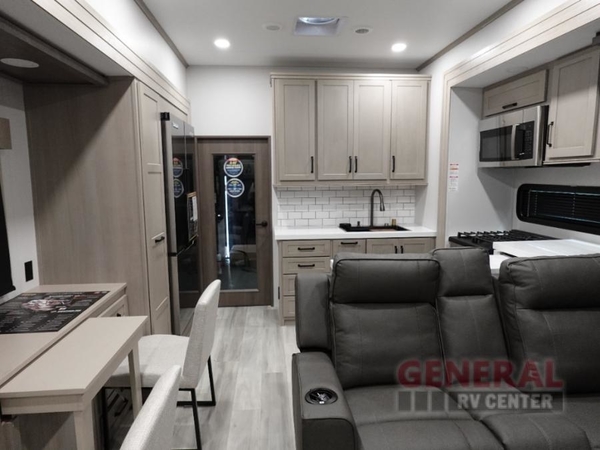 With any Momentum M-Class toy hauler by Grand Design, you will enjoy luxury at every turn! They have been constructed to a superior standard with a thermal roof design, triple insulated main floor and garage floor, and a Rail-Tite underbelly seal that will allow you to camp in all elements. Each model also features an 8' 5" wide body chassis with a wide rail design, no wheel wheels, and a dovetail entry for easier loading. The Stealth A/C system provides maximum cooling power, and the CRE3000 suspension system means you can enjoy a smooth tow each time. You will love the luxurious interior with a professional grade stainless steel cooktop, interior color changing LED accent lighting, a fiberglass shower with a glass door, and solid surface countertops.