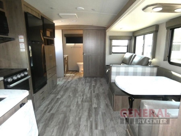 Just imagine leaving the world behind and secluding yourself away with your favorite people in your Grand Design Imagine travel trailer! The Imagine has been designed to enjoy extended season camping and includes a high-capacity furnace, a heated and enclosed underbelly with suspended tanks, a designated heat duct to the subfloor, and a high-density roof insulation with attic vent. You'll have maximum head room on the interior with 81" radius ceilings, and large panoramic windows to let in natural lighting. The exclusive drop-frame pass-through storage compartment is going to allow you to bring along lots of equipment, and the universal docking station is an all-in-one location for utilities and hook-ups. You'll also have industry-leading tank capacities so that you can fill and empty your tanks less often.
