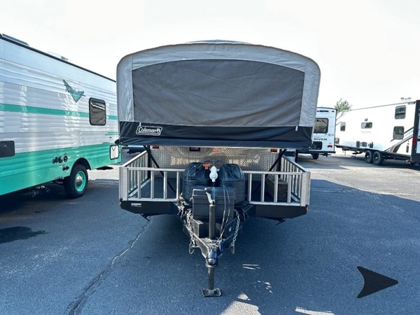 Single Slide Evolution Series Folding Camper w/Rear & Front Tent End Beds, Storage, Bed Step, Storage, Booth Dinette w/Portable Table Slide Out, 2 Burner Range, Single Galley Sink, Storage, Cassette Potti w/Shower, Front Cargo Deck Exterior and More.