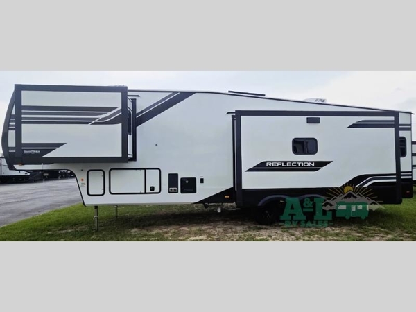 With any Reflection fifth wheel by Grand Design, you will have a solar panel for off-grid camping and a 60 amp charge controller and inverter prep, a Universal All-In-One docking station, unobstructed pass-through storage, and Goodyear Endurance tires. Each is constructed of gel coat exterior sidewalls, residential 5" truss rafters, walk-on roof decking, a fiberglass and radiant foil roof and front cap insulation plus laminated aluminum framed side walls, roof and end walls in slide rooms. Head inside to enjoy residential hardwood cabinet doors, premium Congoleum flooring, a spacious shower with a glass door, and many more comforts!