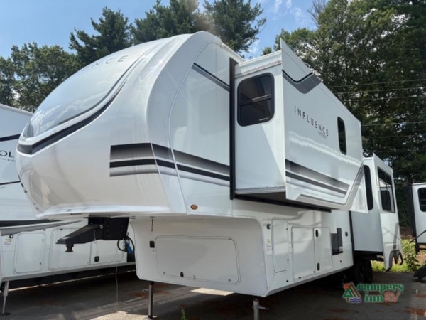 Any Grand Design Influence fifth wheel features five-sided aluminum cage construction with a walk-on roof and a fully enclosed underbelly with heated tanks and storage for all weather camping. For peace of mind, the MORryde CRE3000 Suspension system will provide safe and smooth towing, and the 101" widebody construction offers all the room you need and that is before multiple slides are fully engaged. You will appreciate the Keyed-Alike locks, slam-latch baggage doors with magnetic door catches, exterior security light, and SolidStep entry steps. On the inside, Congoleum flooring, premium roller shades for privacy, a hallway handrail for safety, and nightstands with USB ports to keep all of your electronics fully charged. You will also love the On Demand tankless water heater when showering, plus the added heat and ambiance from an electric fireplace, and so much more!