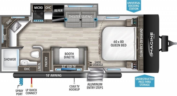 The 2026 models have arrived ! In stock is this 2026 Grand Desgin Imagine XLS 22MLE Travel Trailer. This very popular floorplan features a 60 x 80 Island Queen Bed in the front of the unit, along with theater seating and a booth dinette. The large kitchen area features ample counter and storage space for maximum usability. Factory installed options include: Peace of Mind Package, Ultimate Power Package, Four Season Protection package, Solar package, Goodyear tires, and ABS axles with Sway Control. Of course, Grand Design's 1/3/5 year warranty is one of the best in the recreational vehcile industry. Click on the RED INNTERNET PRICE BUTTON on the homepage of this listing to receive our selling price. Remember at Coachlight, NO EXTRA FEES OR CHARGES are added to the price at closing. Our sales price is the price you pay !! Give Norm or Doug a call at 800-799-7444 with questions or for more information.