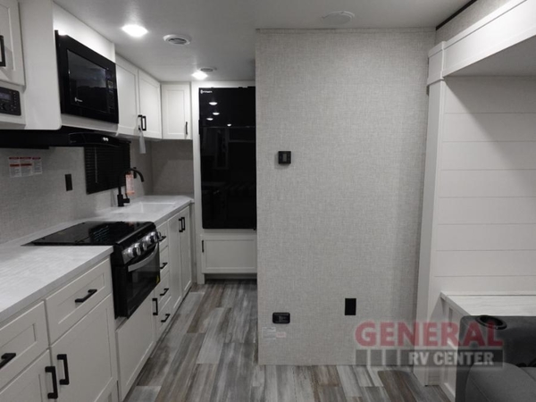 This couple's trailer will be perfect for weekend trips to the lake or extended stays at the campground. You can sleep on the front queen bed each night instead of on an air mattress, and the dual bedroom wardrobes will help keep your space organized. The theater seat with tables is within a slide for more floor space, and the fully-equipped kitchen will allow you to make meals each day. You'll also appreciate the rear corner full bath to stay clean throughout each trip!
